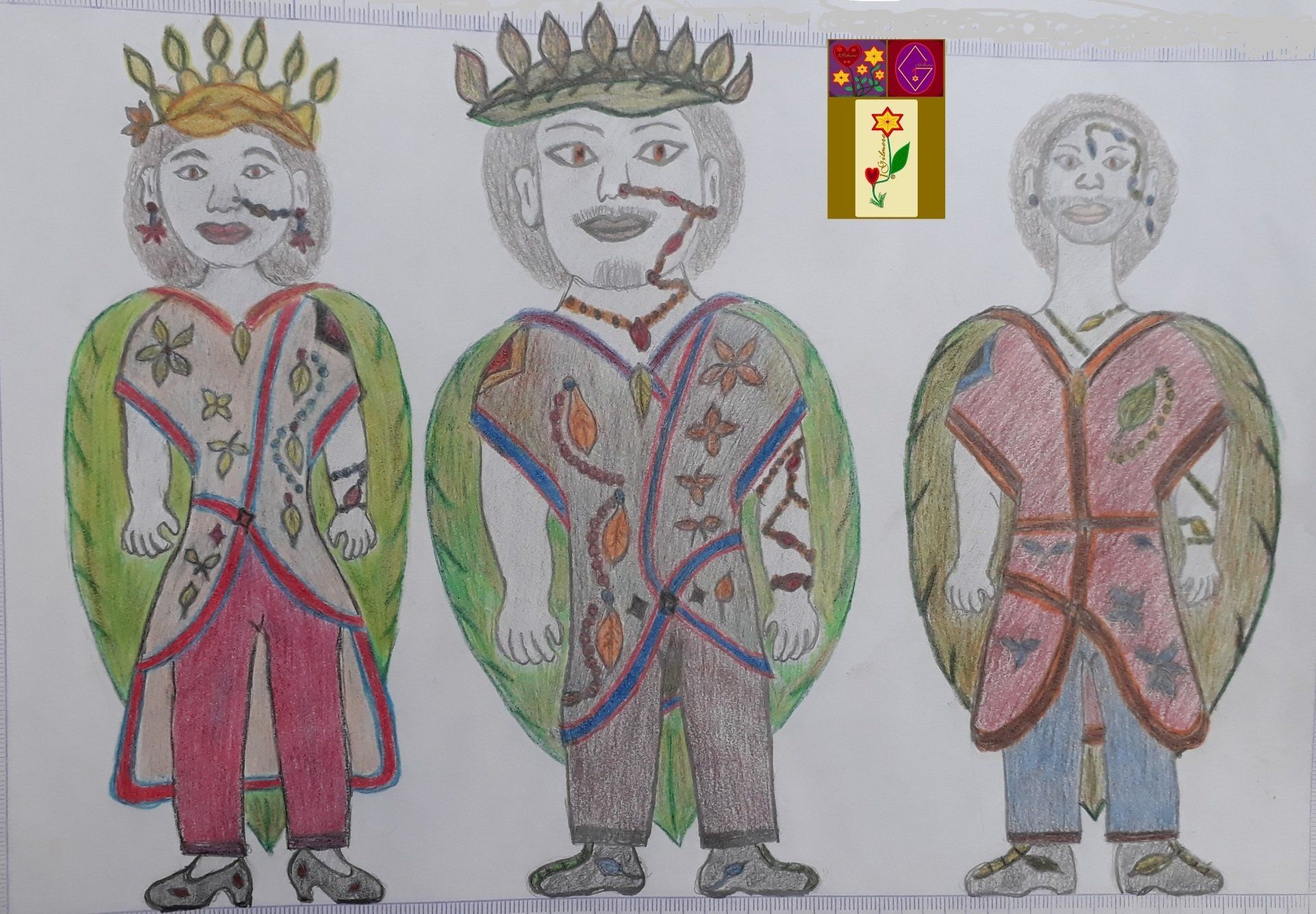 Esses desenhos foram feitos a mão, e os bonecos foram feitos em papel machê.